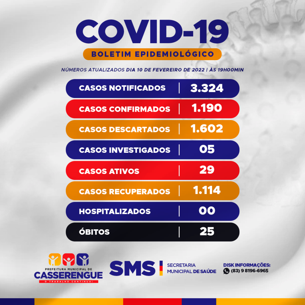 BOLETIM COVID-19 em 10 de fevereiro de 2022 às 19h00min.