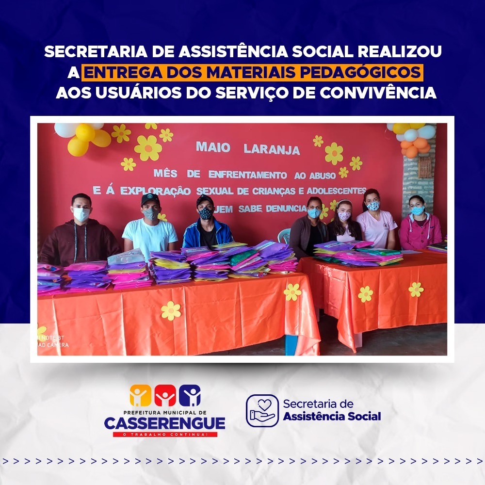 A Prefeitura Municipal de Casserengue realizou através da Secretaria de Assistência Social a entrega dos materiais pedagógicos as crianças e adolescentes do Serviço de Convivência.