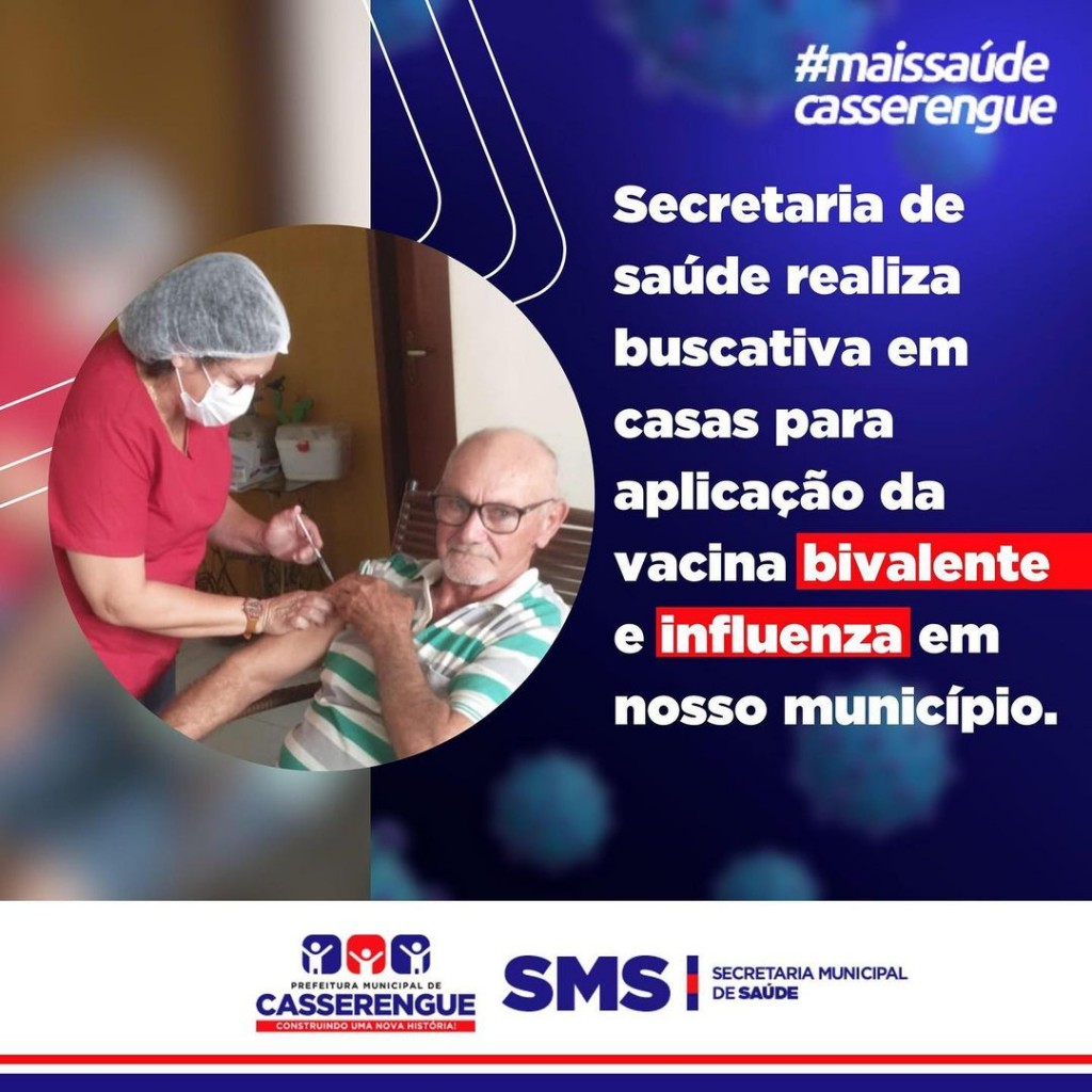 Secretaria Municipal de Saúde realiza buscas em casas para aplicação de vacinas. Foram aplicadas as vacinas, bivalente da COVID-19 e Influenza em nosso município.