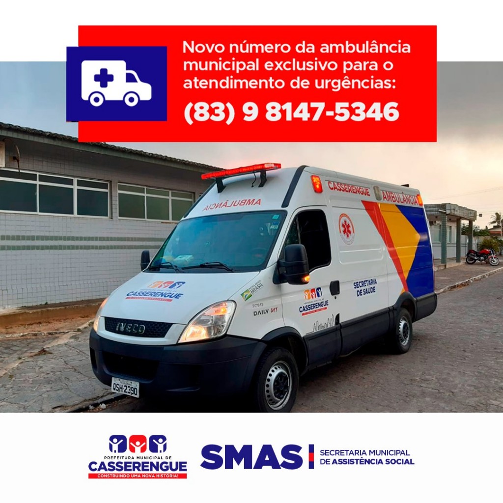 Novo número da Ambulância Municipal para o atendimento de urgência: