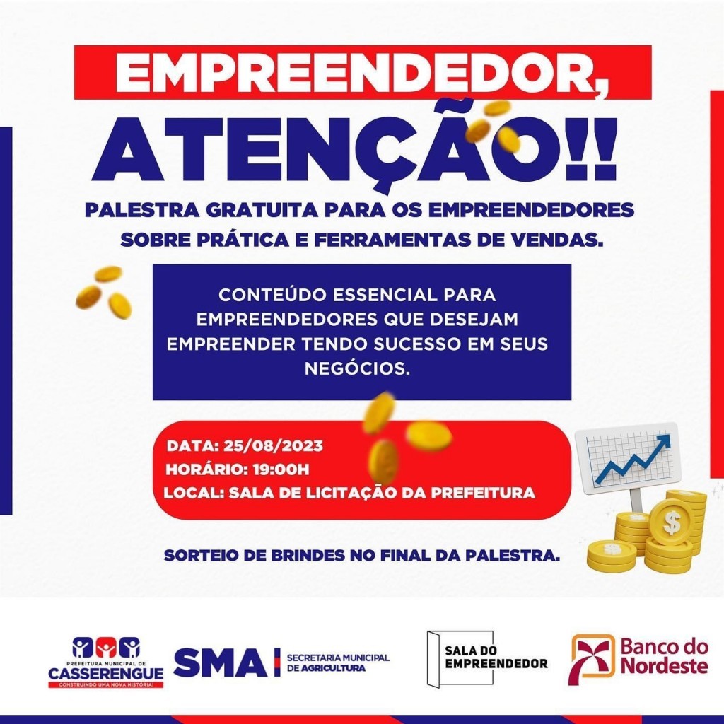 Palestra gratuita para os empreendedores sobre práticas e ferramentas de vendas.