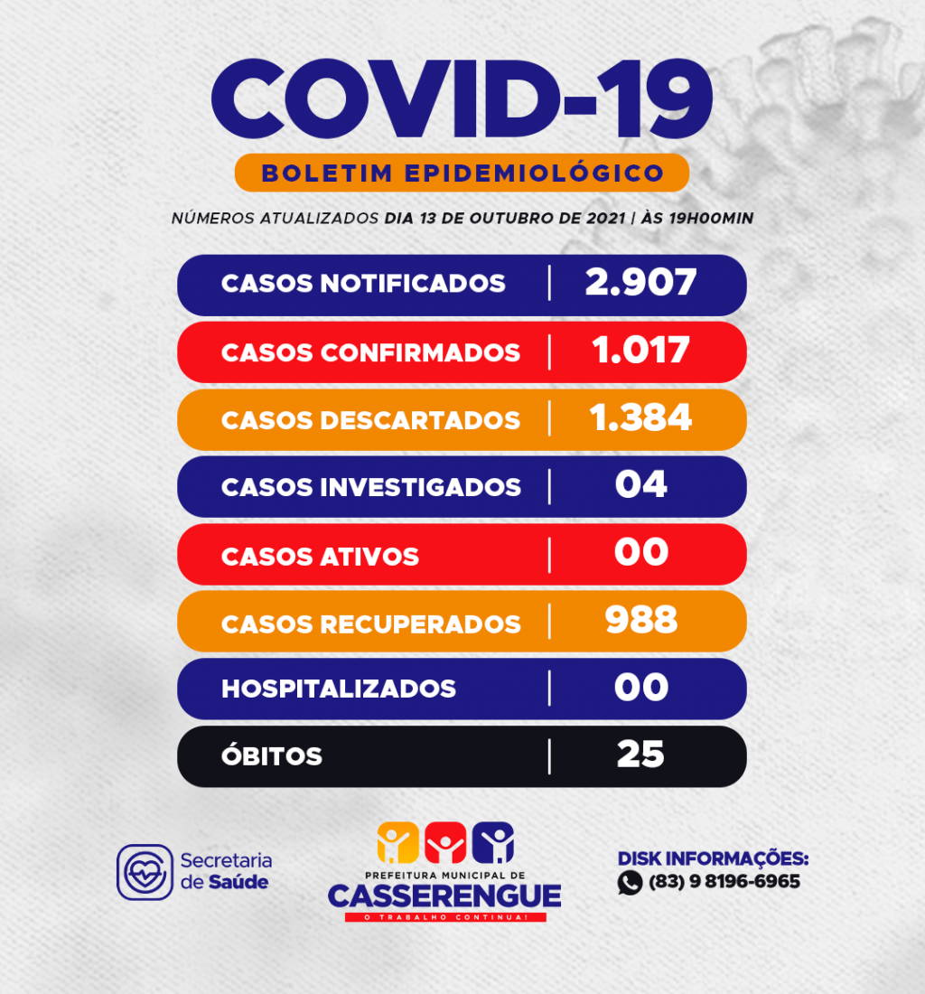 ℹ️BOLETIM EPIDEMIOLÓGICO, 13/10/2021 - CASSERENGUE-PBℹ️