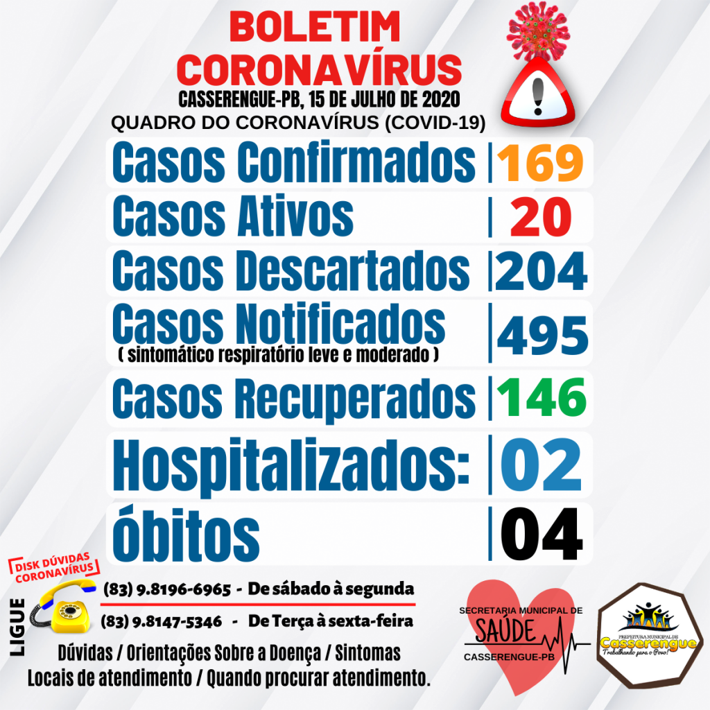 Boletim Epidemiológico, 15/07/2020 - Casserengue-PB