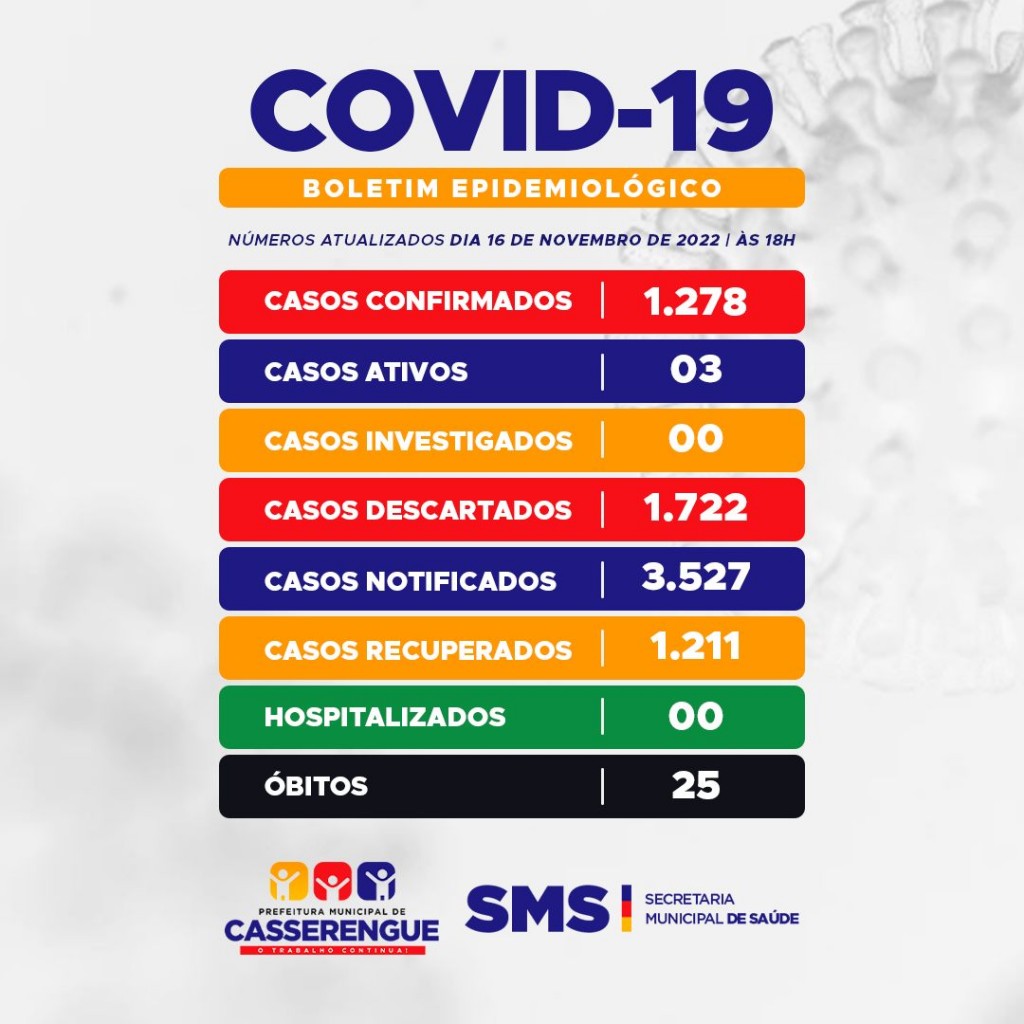 BOLETIM COVID-19 em 16 de novembro de 2022 às 18h00min.
