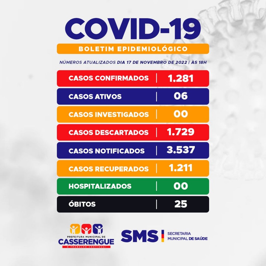 BOLETIM COVID-19 em 17 de novembro de 2022 às 18h00min.