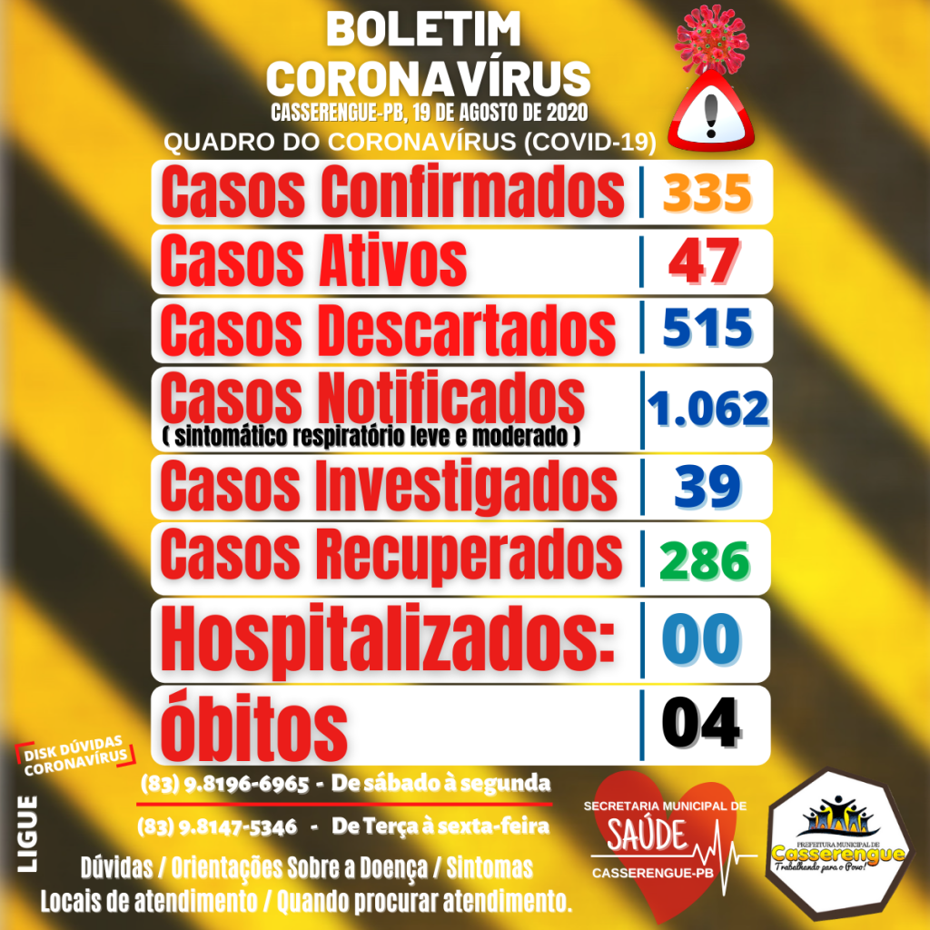 Boletim Epidemiológico, 19/08/2020 - Casserengue-PB