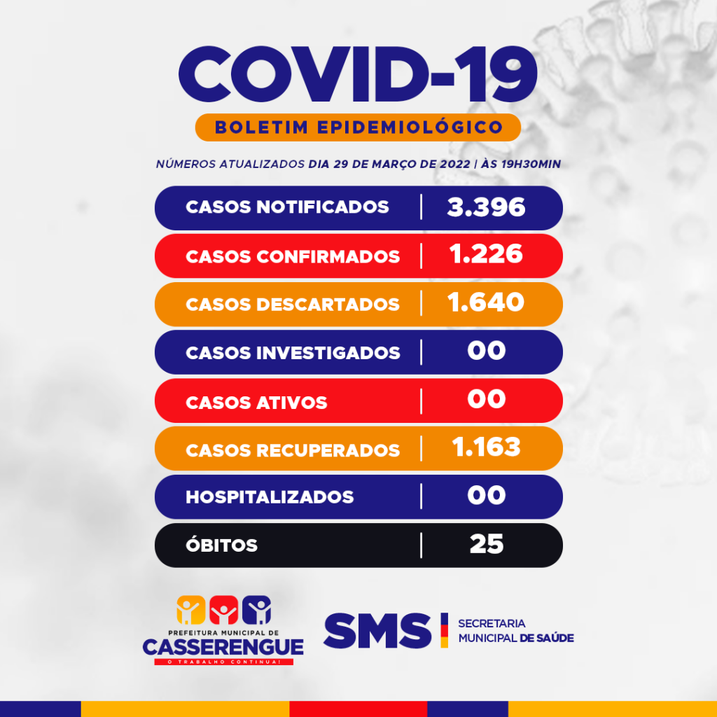 BOLETIM COVID-19 em 29 de março de 2022 às 19h30min.