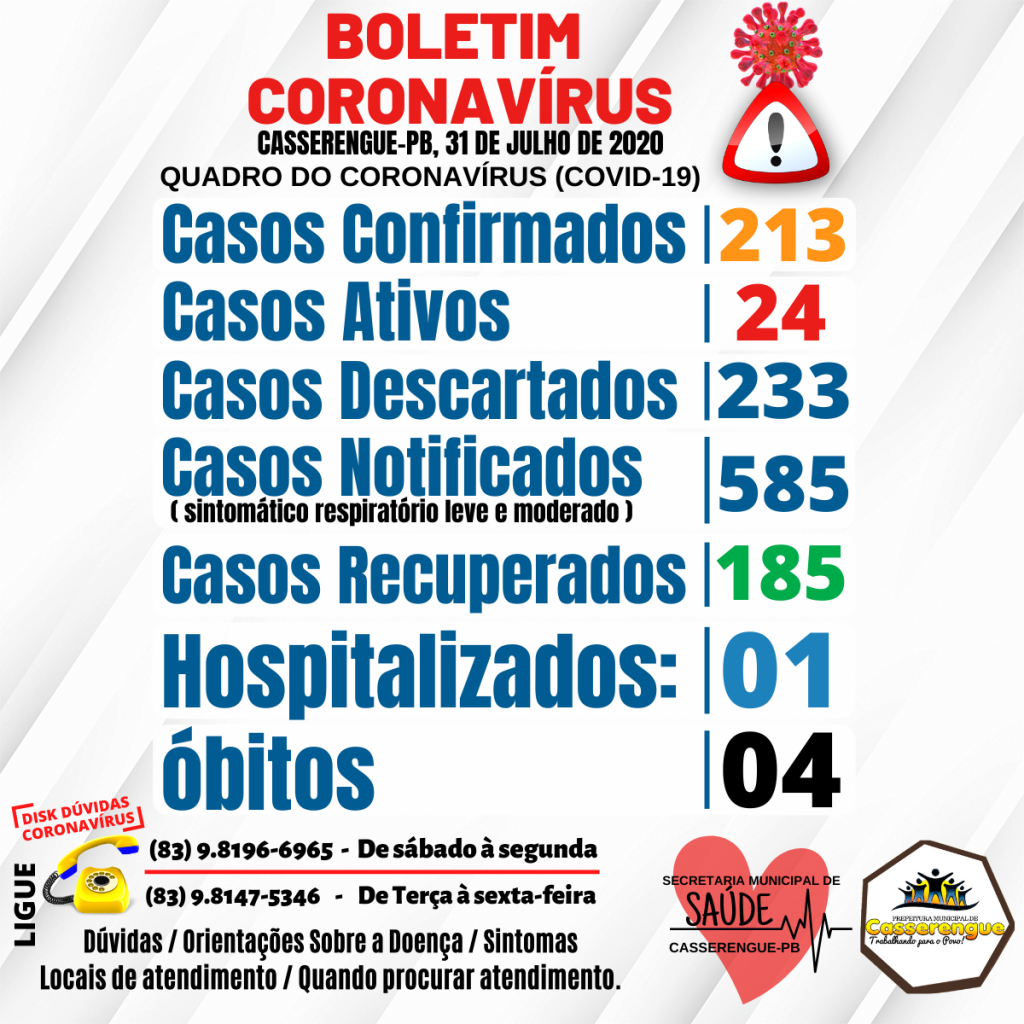 Boletim Epidemiológico, 31/07/2020 - Casserengue-PB