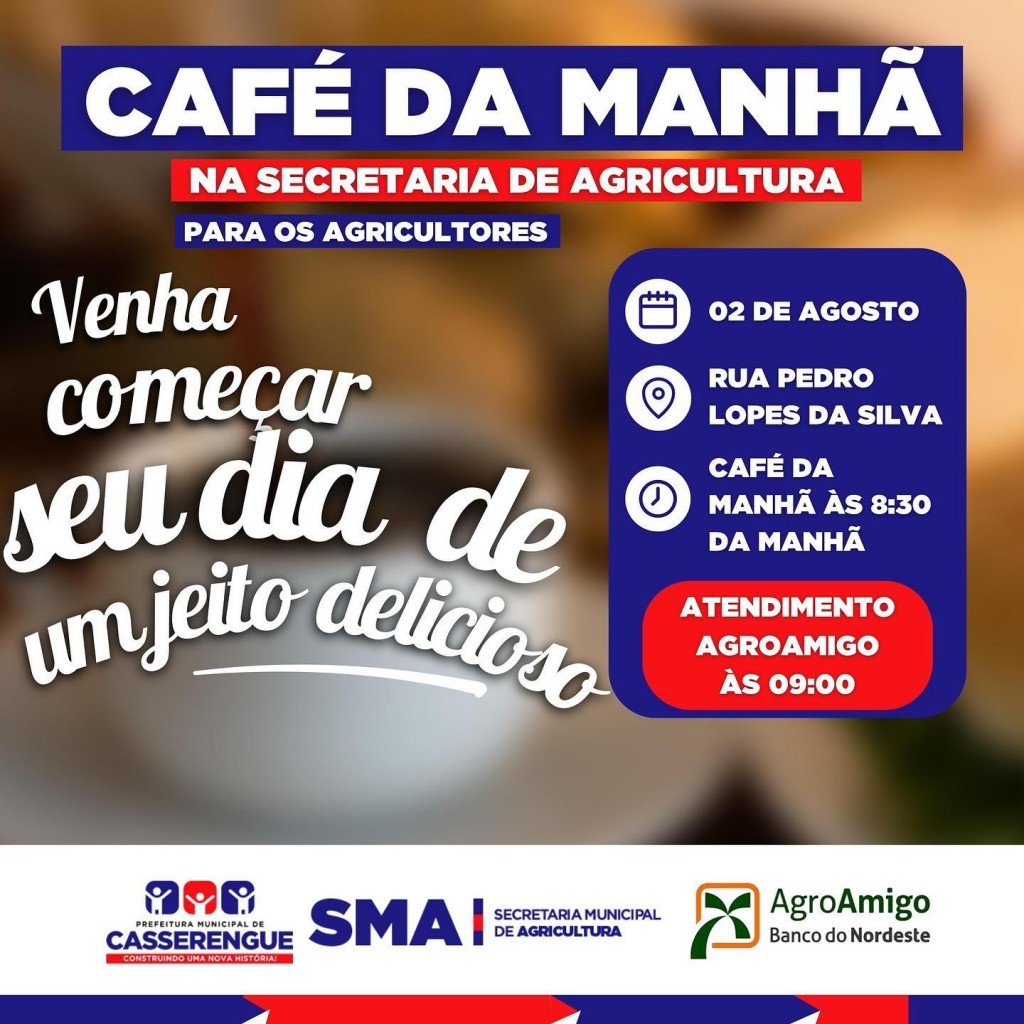 A Secretaria de Agricultura convida para participar do Café da manhã para os Agricultores: