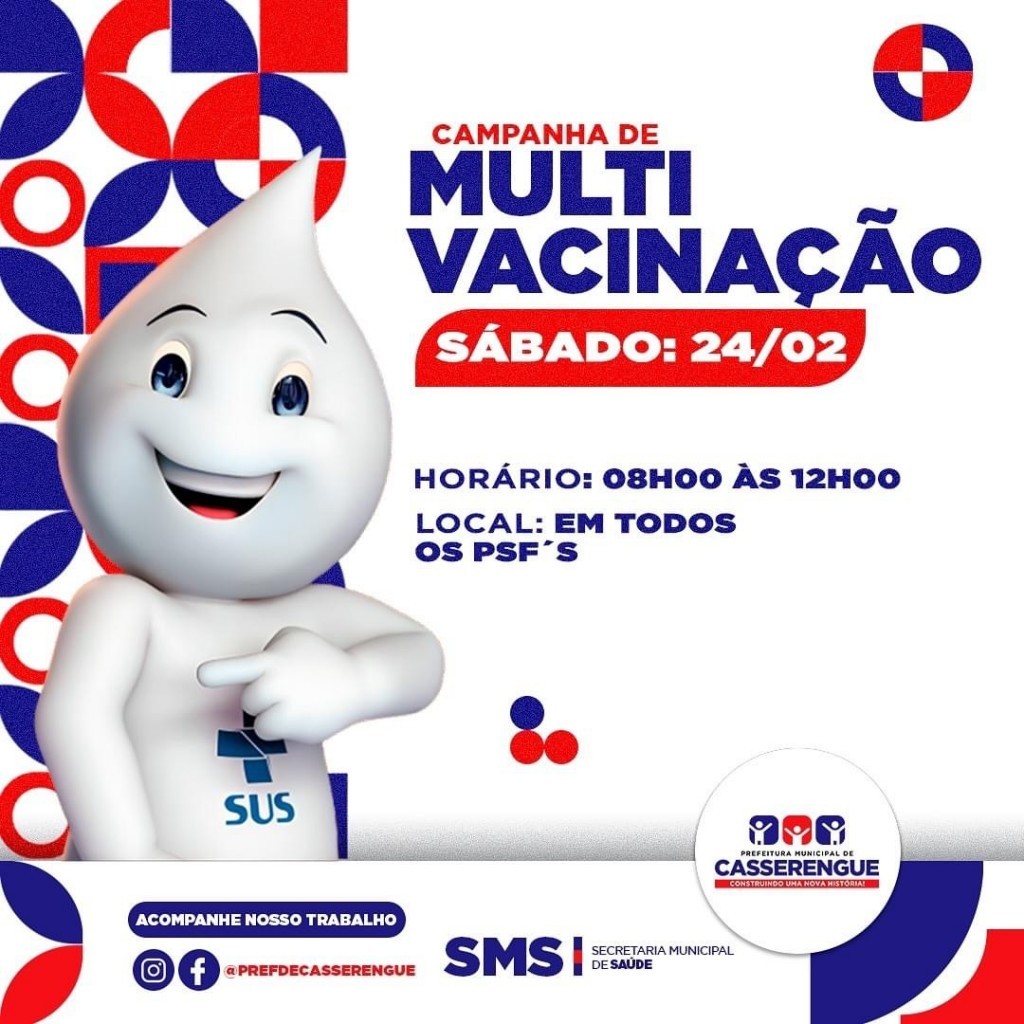 A Secretaria Municipal de Saúde, informa que nesse sábado 24 de fevereiro acontecerá o dia D de Vacinação.