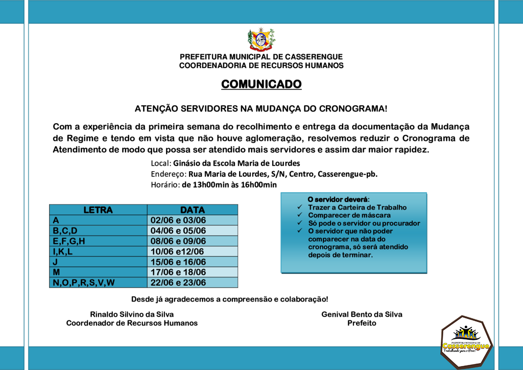 ATENÇÃO SERVIDORES NA MUDANÇA DO CRONOGRAMA!