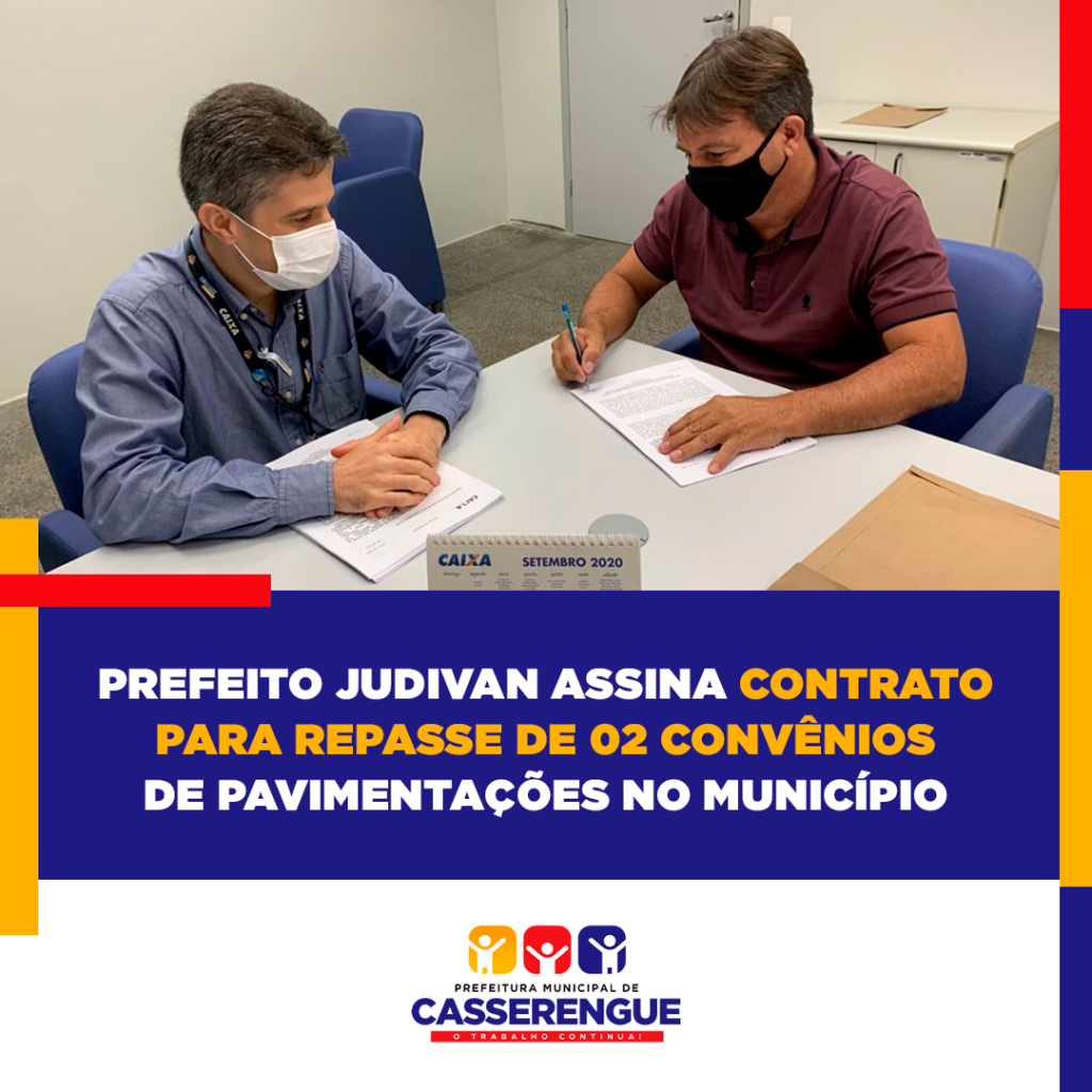 O Prefeito Judivan assinou nesta última quarta-feira (08) o contrato de repasse dos convênios nº. 911771 e nº. 914885 na Caixa Econômica Federal no município de Campina Grande.