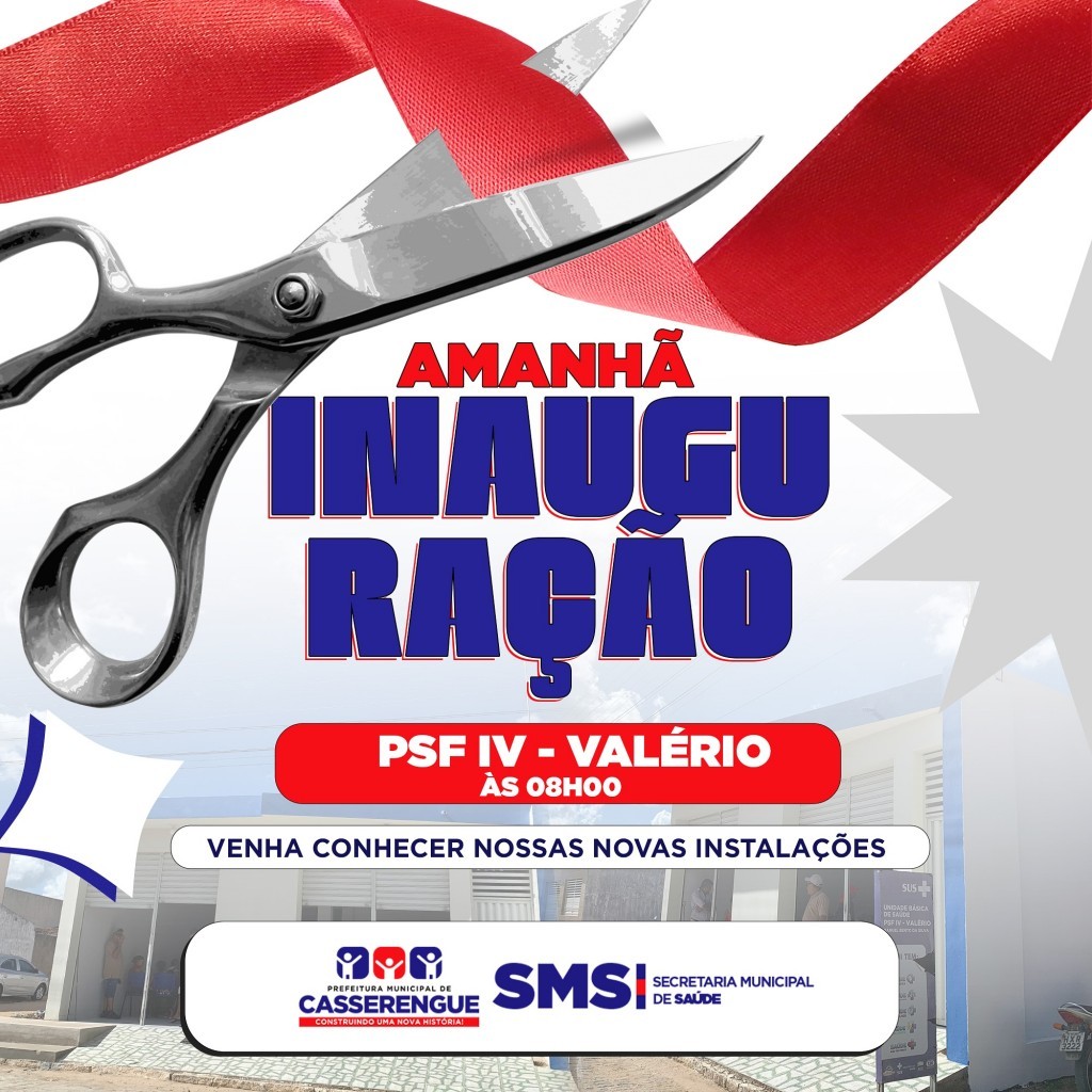 Amanhã Teremos a Inauguração do Novo Espaço de Saúde PSF IV- Valério, venha conhecer nossas novas instalações.