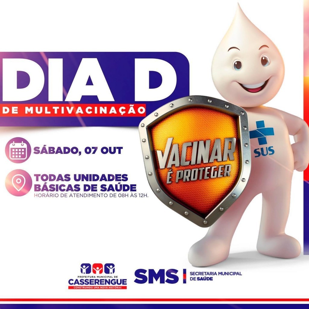 A Secretaria Municipal de Saúde, informa que nesse sábado 07 de outubro acontecerá o dia D de Vacinação.