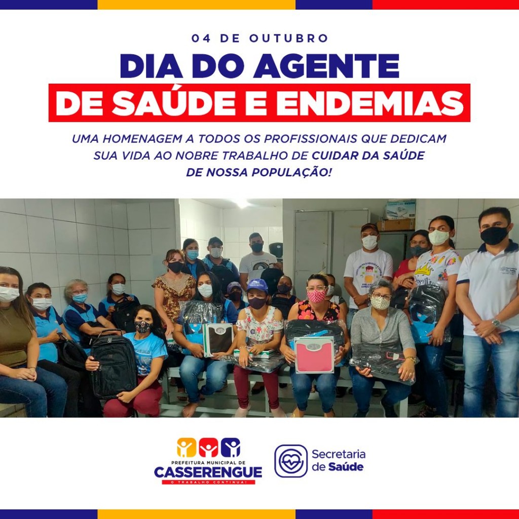 Hoje (04) de Outubro é comemorado o dia do Agente Comunitário de Saúde e de Combate às Endemias, à estes profissionais queremos parabenizar pelo trabalho prestado em nosso município.