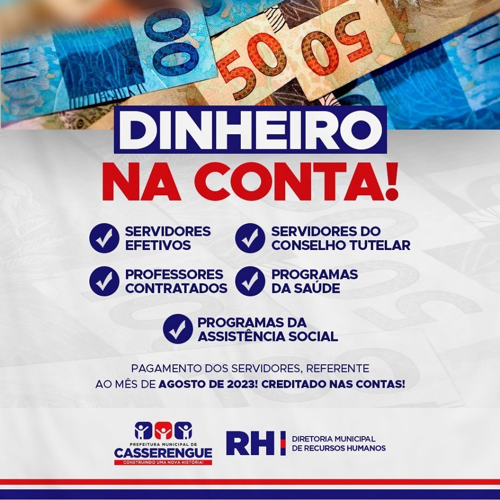 Pagamento dos servidores, referente ao mês de agosto de 2023, creditado nas contas