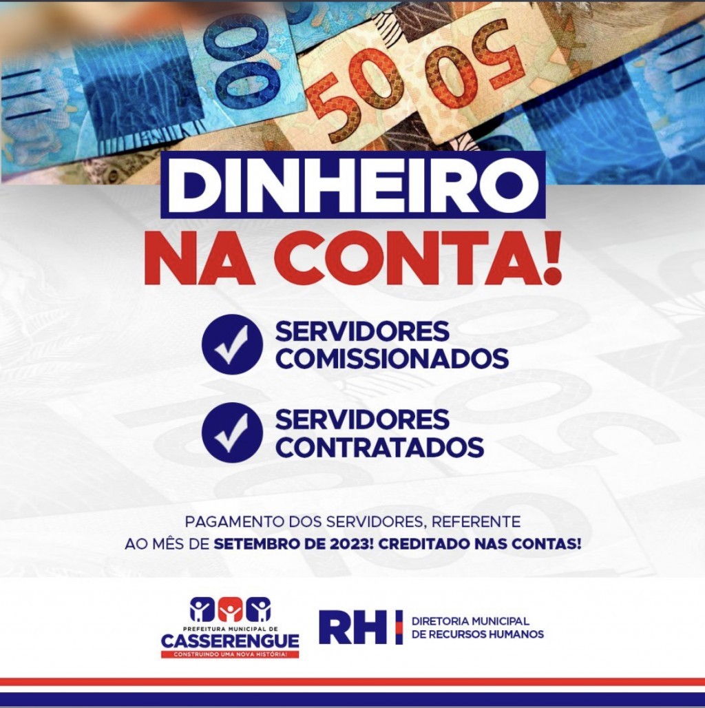 Pagamento dos servidores, referente ao mês de setembro de 2023, créditos nas contas: