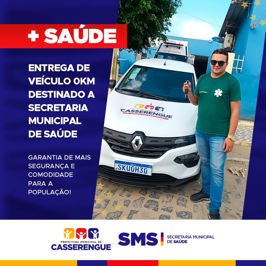 A Secretaria Municipal de Saúde, representada pelo colaborador Kelson Martins, recebeu um veículo 0km para uso da população