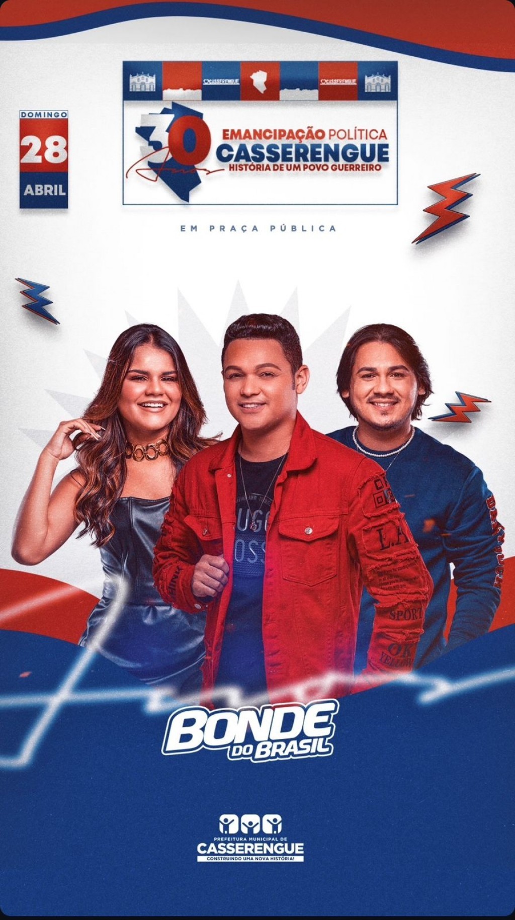 Trigésimo aniversário de emancipação política de Casserengue está chegando. Vamos dançar muito forró romântico ao som da primeira atração artista do evento, Banda Bonde do Brasil.