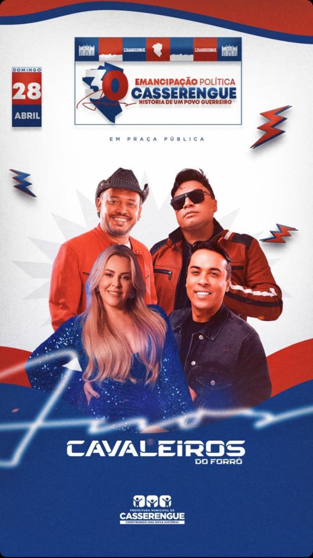 Trinta anos de emancipação política de Casserengue está chegando. Vamos dançar muito forró ao som da segunda atração artista do evento, Banda Cavaleiros do Forró.
