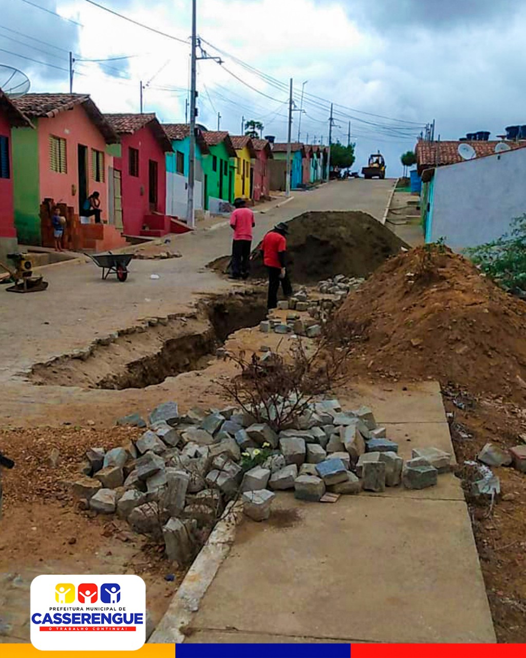 O governo municipal, através da Secretaria de Infraestrutura, realizou manutenção de calçamento em Rua da comunidade do Conjunto José Miguel.