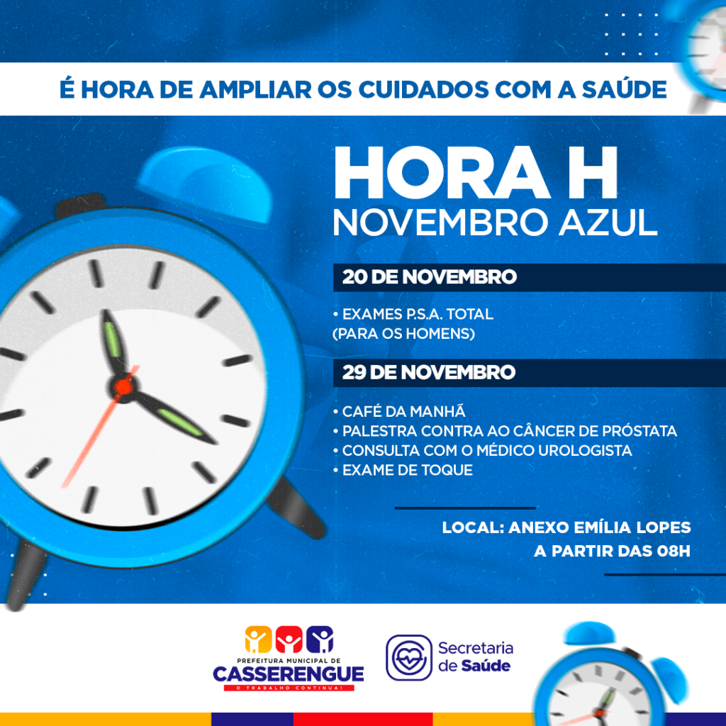 Neste mês de novembro, a Prefeitura Municipal de Casserengue estará realizando por meio da Secretaria de Saúde, ações de exames preventivos ao Câncer de Próstata no Novembro Azul.