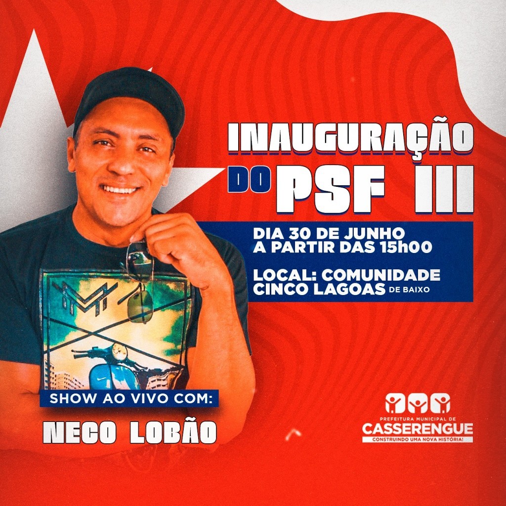 Dia 30 de Junho teremos a inauguração do PSF III, na comunidade Cinco Lagoas de baixo.🏥