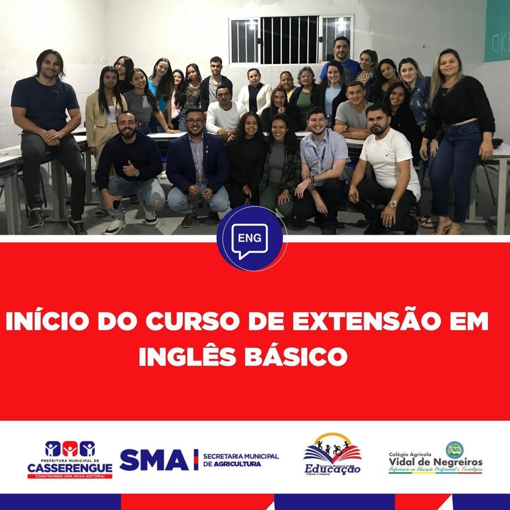 A prefeitura municipal através das Secretarias de agricultura e de Educação, em parceria com o cavnufpb , disponibilizou para a população um curso de Extensão em Inglês Básico de forma presencial.