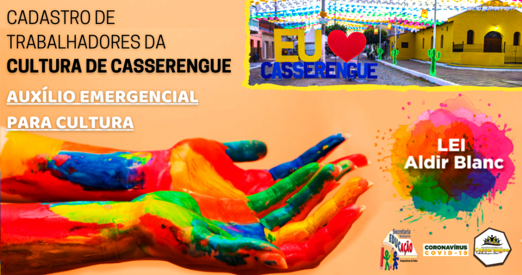 A Prefeitura Municipal de Casserengue, através da Secretaria de Educação e Cultura, informa que está aberta a plataforma para recebimento dos cadastros para pessoas físicas, jurídicas e espaços culturais situados no Município, para fomentar a base de dados para utilizar nas ações de aplicação da Lei Federal Aldir Blanc, Nº 14.017/2020, de ações emergenciais destinadas ao setor cultural. O cadastro cultural é destinado aos trabalhadores da cultura, espaços artísticos e culturais, microempresas e pequenas empresas culturais, cooperativas, instituições e organizações culturais comunitárias que tiveram suas atividades interrompidas por força das medidas de isolamento social devido à pandemia da Covid-19 no município de Casserengue. Os interessados devem efetuar seu cadastro acessando o link abaixo, que está disponibilizado também em banner neste portal, em posição de destaque, enquanto o prazo para cadastramento estiver vigente: https://docs.google.com/forms/d/1YTbB0VhslP7-OMEFlieQLKSlcBEZY5GhzyaUToTM2lo/viewform?edit_requested=true