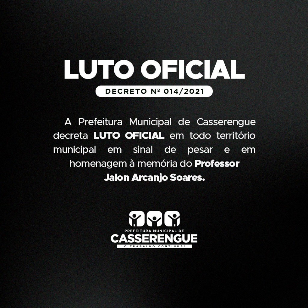 A Prefeitura de Casserengue manifesta o pesar de todos os cidadãos casserenguenses pelo falecimento do Professor Jalon Arcanjo Soares, registrado nesta terça-feira, 27 de abril de 2021.