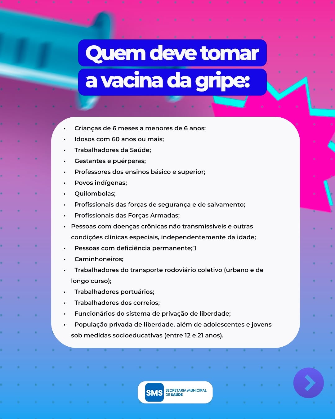 ‼️ Importante: além das vacinas contra a gripe e o sarampo, também estarão disponíveis as demais vacinas do calendário vacinal do SUS.