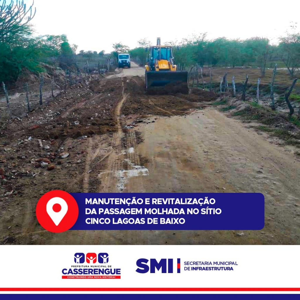 A Prefeitura de Casserengue está realizando a revitalização da "passagem molhada" no Sítio Cinco Lagoas de Baixo. O trabalho é essencial em virtude da chegada do período chuvoso e também para facilitar o deslocamento de veículos na localidade.