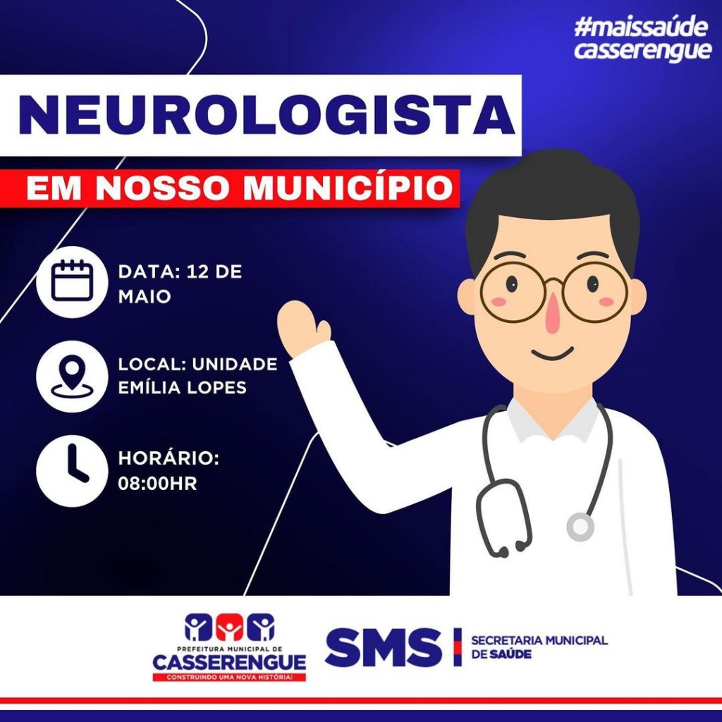 A secretaria municipal de saúde, juntamente com a prefeitura municipal informa que na próxima Sexta-feira 12 de maio, teremos atendimento com o Neurologista a partir das 08h00 na unidade Emília Lopes.