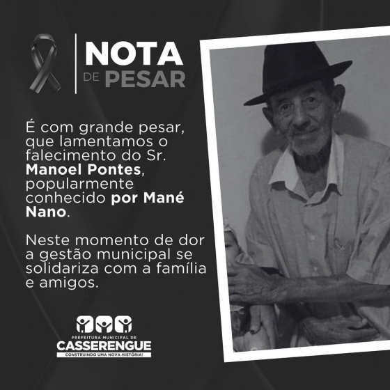 Neste momento de dor a gestão municipal se solidariza com a família e amigos.