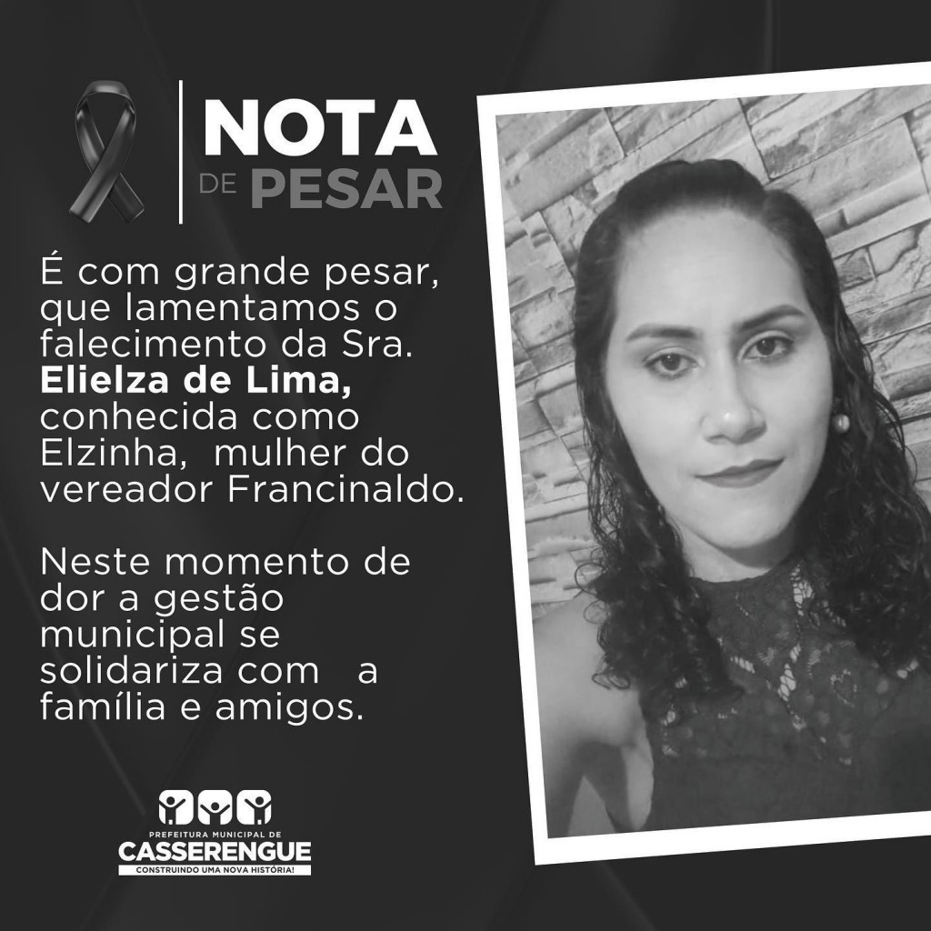 É com grande pesar, que lamentamos o falecimento da Sra Elielza de Lima, conhecida como Elzinha, mulher do vereador Francinaldo.