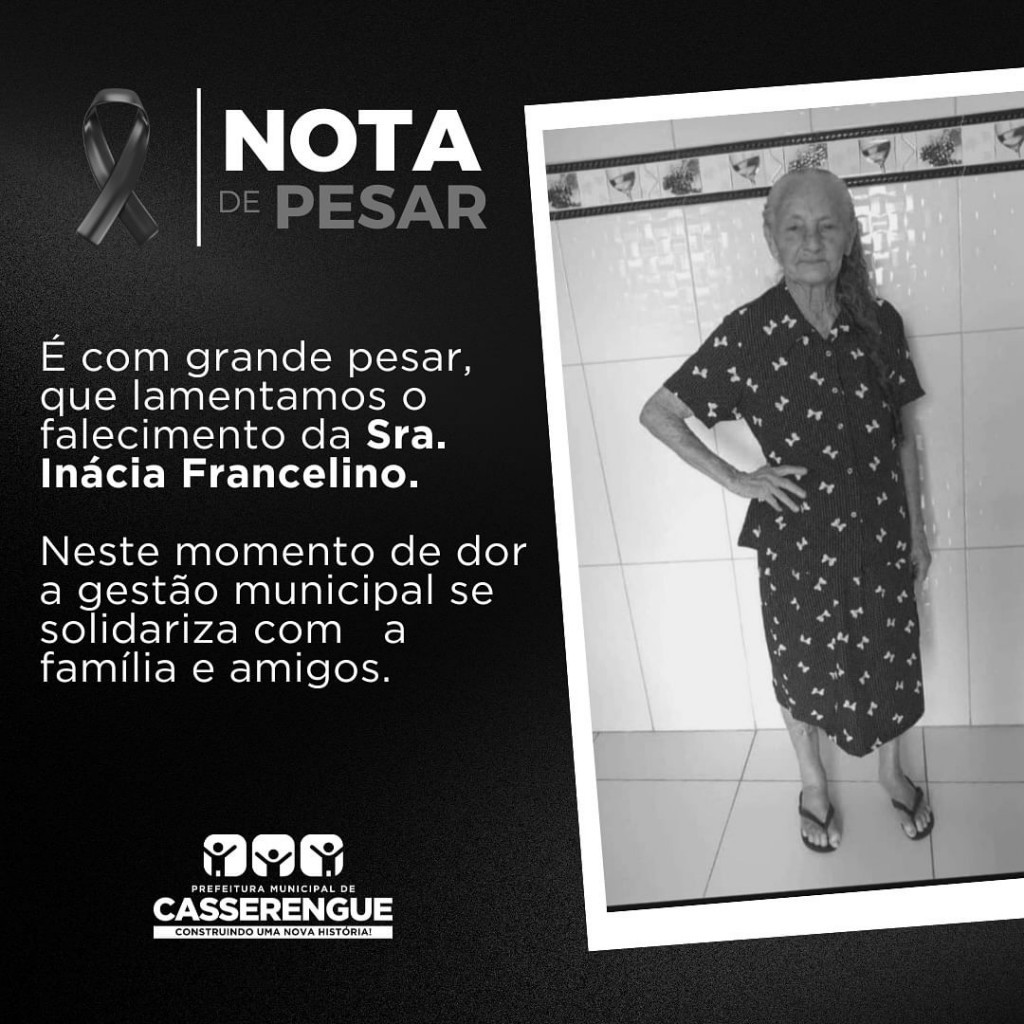 É com grande pesar que lamentamos o falecimento da Sra. Inácia Francelino.