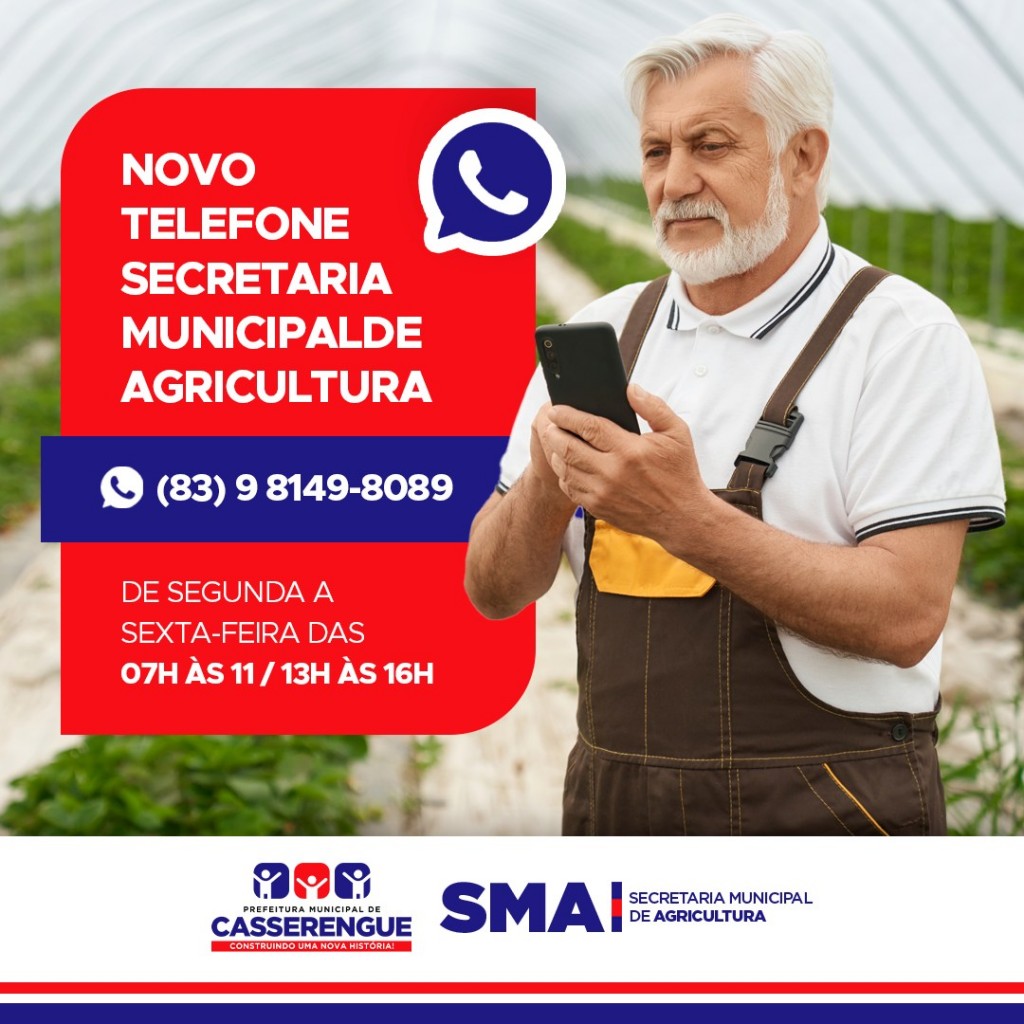 Novo Telefone da Secretaria de Municipal de Agricultura