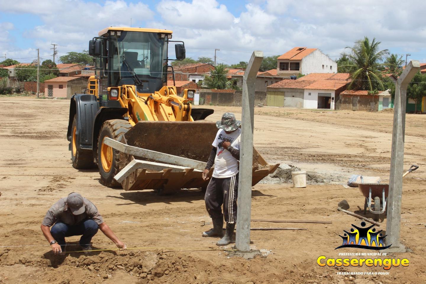 Características da obra: campo em grama natural, drenagem, vestiários, mureta, alambrado e iluminação.