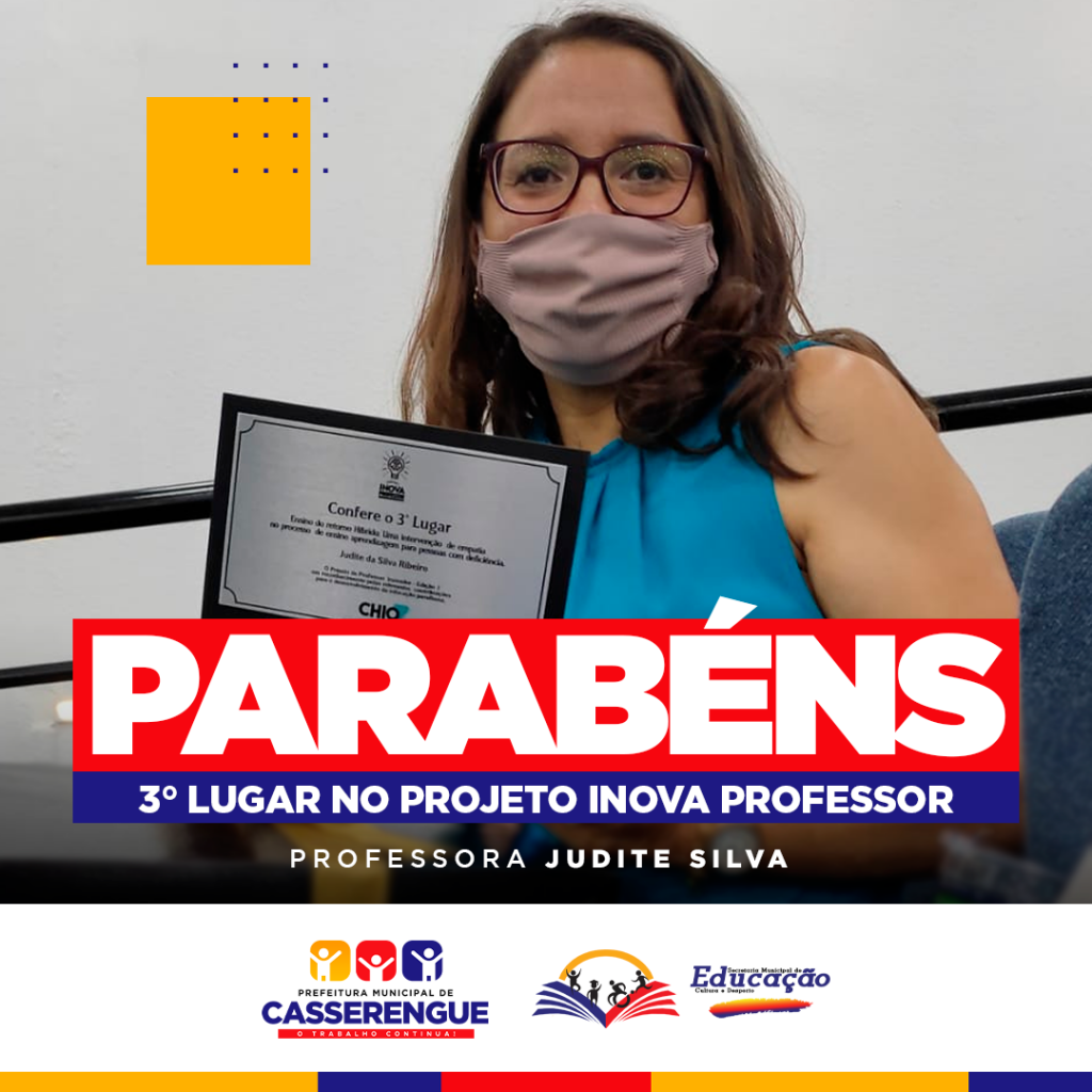 Nesta sexta-feira (15/out.), a nossa Professora Judite Silva foi honrada com a 03.ª colocação no Prêmio Inova Professor.