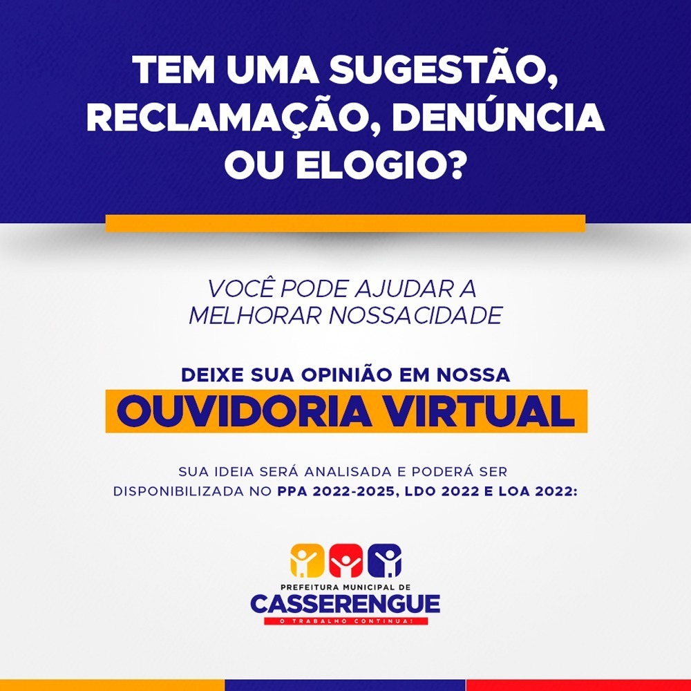 Durante este período a população poderá interagir com a gestão municipal enviando suas sugestões, reclamações, denúncias ou elogios. Todas as opiniões serão analisadas e inseridas no PPA 2022-2025, LDO 2022 e LOA 2022: