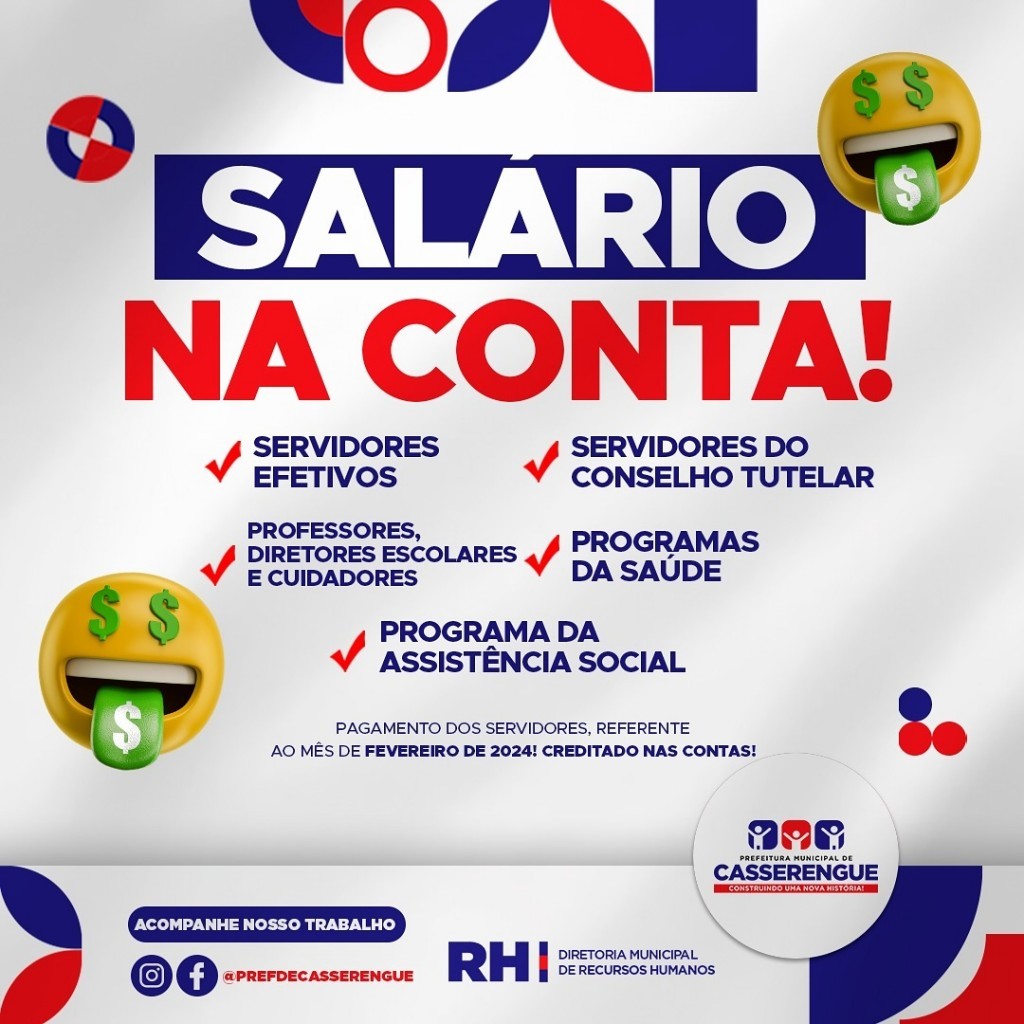 O pagamento dos servidores referente ao mês de Fevereiro já se encontra disponível para retirada