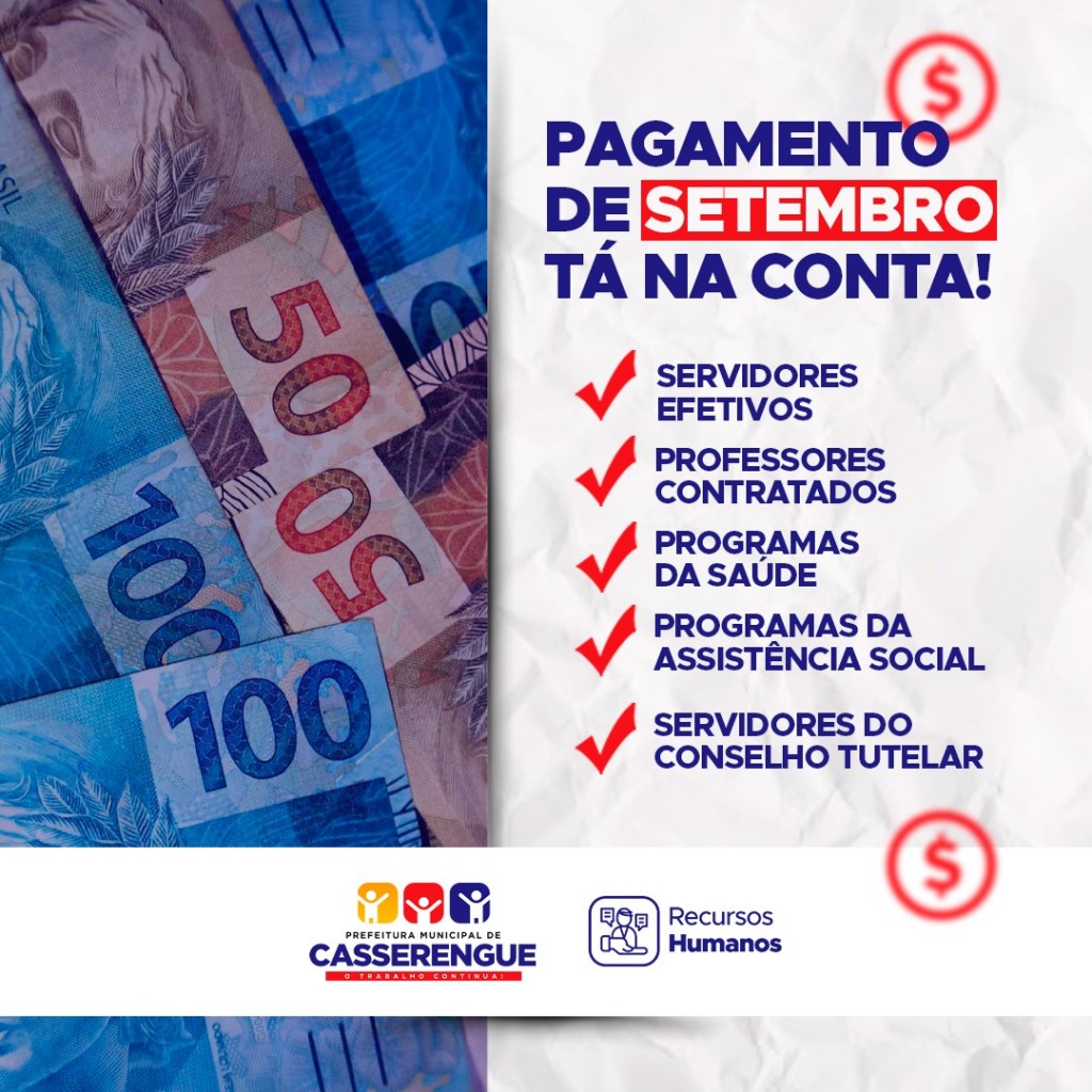 O pagamento referente ao mês de #Setembro foi realizado, honrando o compromisso que a Prefeitura tem de valorizar e reconhecer os servidores municipais.⠀