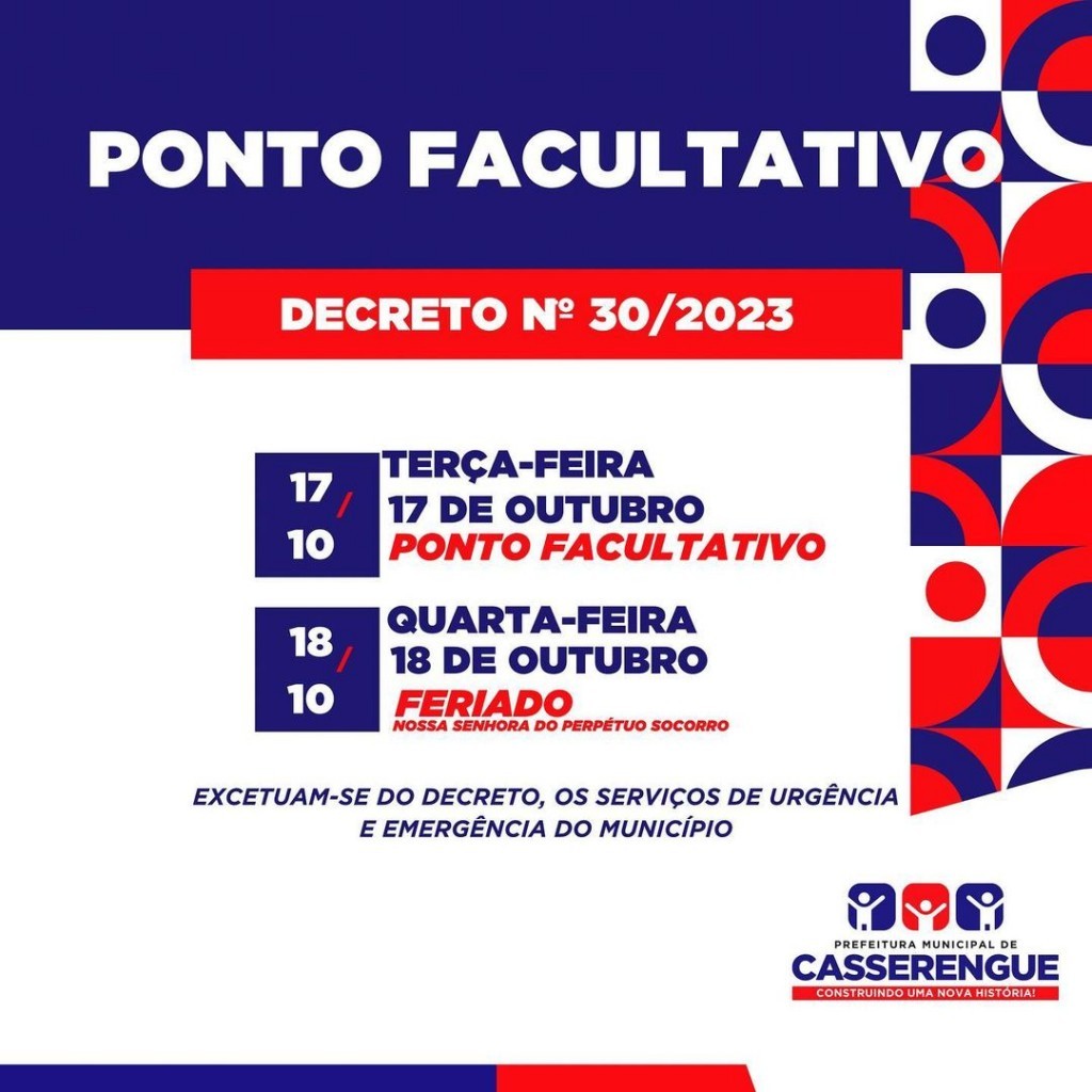 Terça-feira, 17 de outubro - Ponto Facultativo