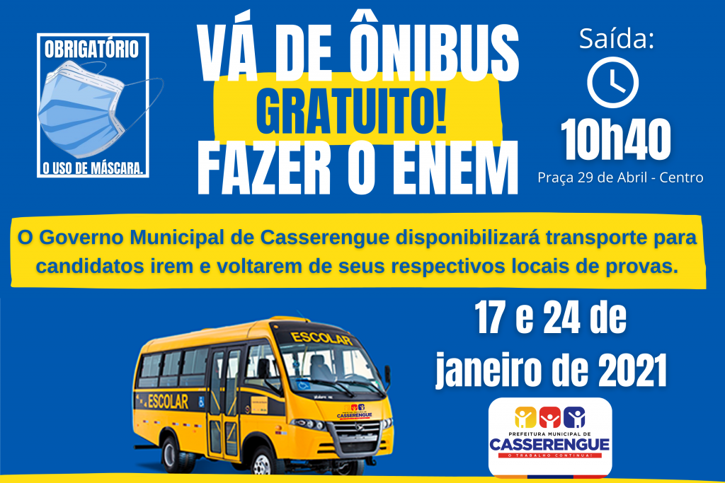 Em incentivo a participação dos estudantes no Exame Nacional do Ensino Médio (Enem), o Governo Municipal de Casserengue, disponibilizará transporte gratuito.