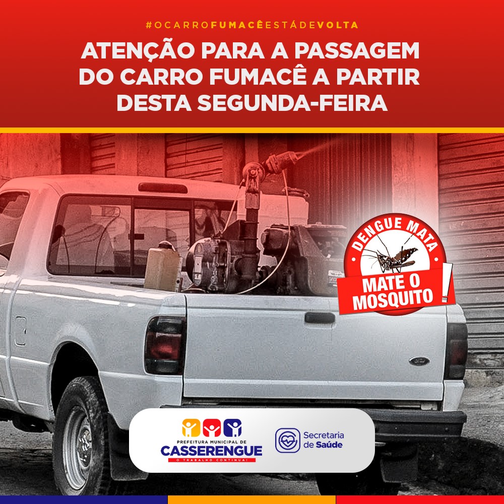 A partir desta segunda-feira (05) o Carro Fumacê estará em circulação no município para combater o mosquito Aedes Aegypti.