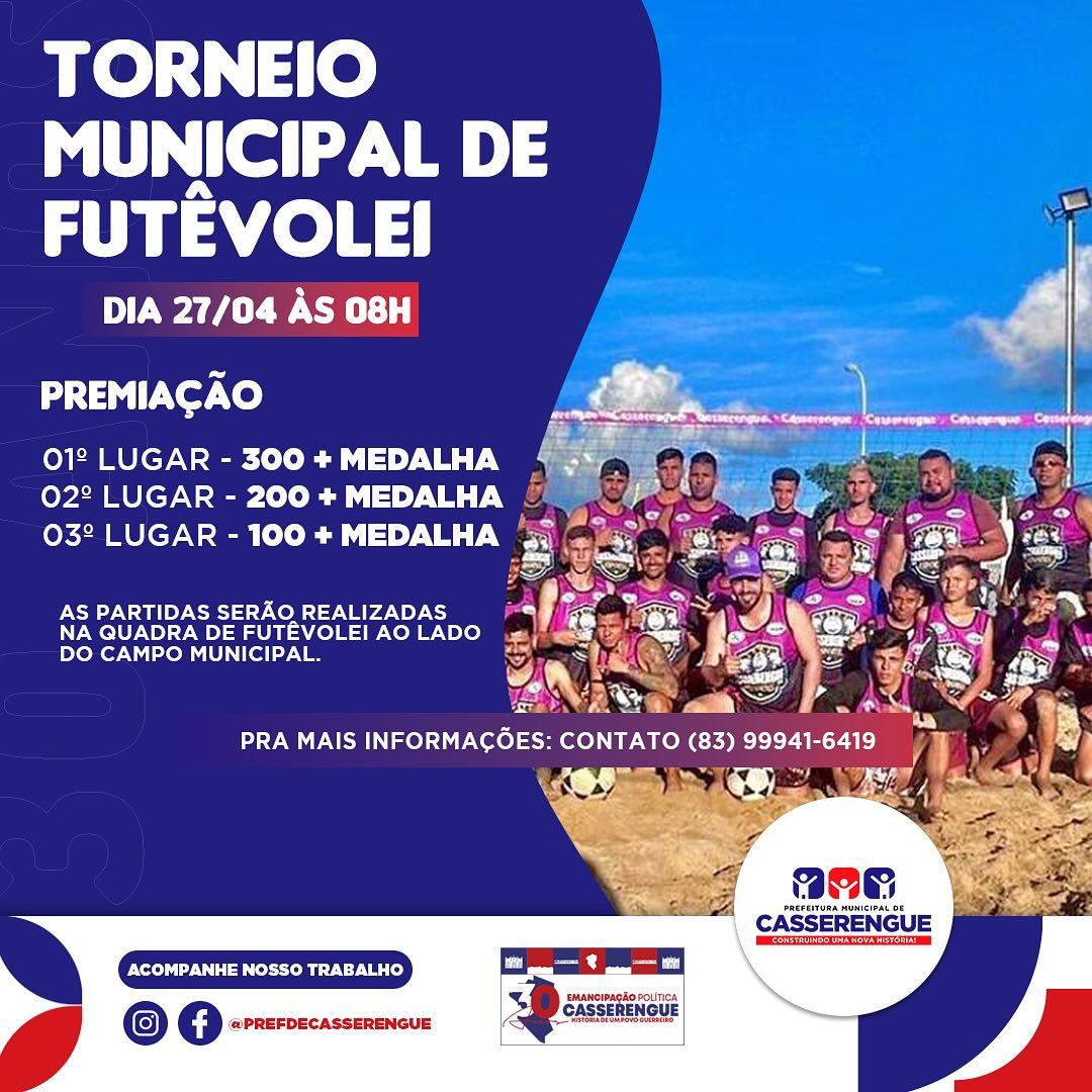 Se liga na programação Esportiva em alusão aos 30 anos de Emancipação Política de nossa Casserengue!
