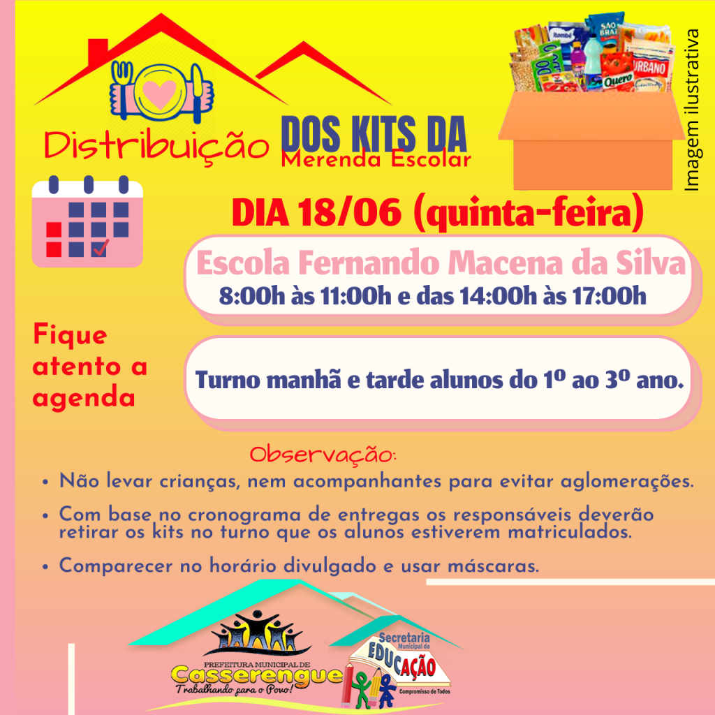 Cronograma de distribuição DOS KITS DA Merenda Escolar
