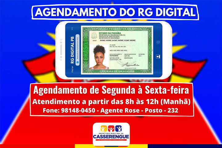 Informações e agendamento para emissão do RG no link abaixo: