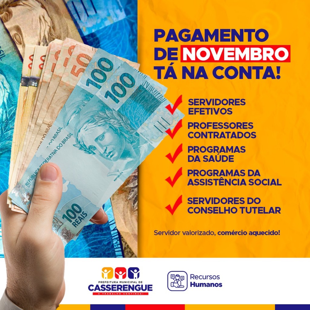 O pagamento referente ao mês de #Novembro foi realizado, honrando o compromisso que a Prefeitura tem de valorizar e reconhecer os servidores municipais.⠀