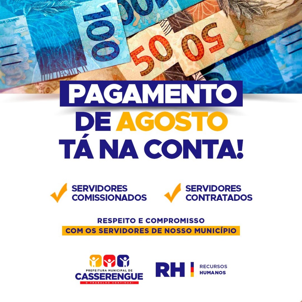 A Prefeitura de Casserengue por meio da Diretoria de Recursos Humanos, efetuou hoje (09/09) o pagamento dos seus servidores COMISSIONADOS e CONTRATADOS.